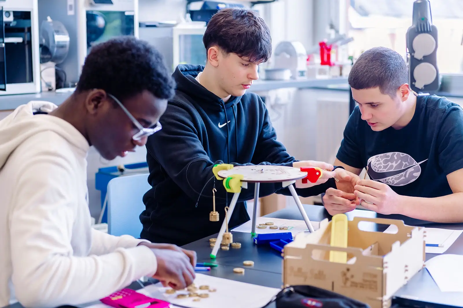Onze labo’s en STEM-lokalen zijn uitgerust met innovatieve apparatuur zoals 3D-printers, lasercutters en robotica. Niet enkel droge theorie, maar ook toepassingen!